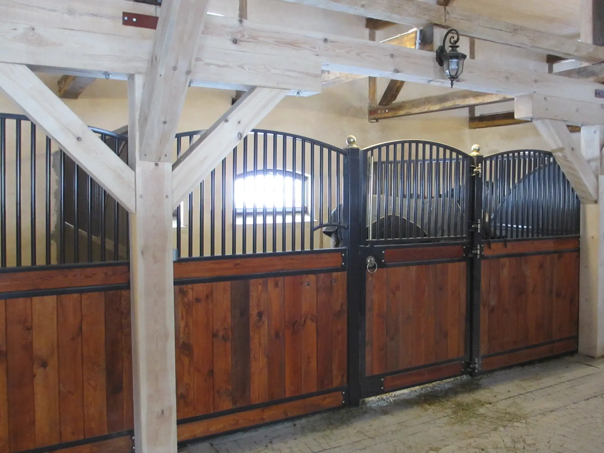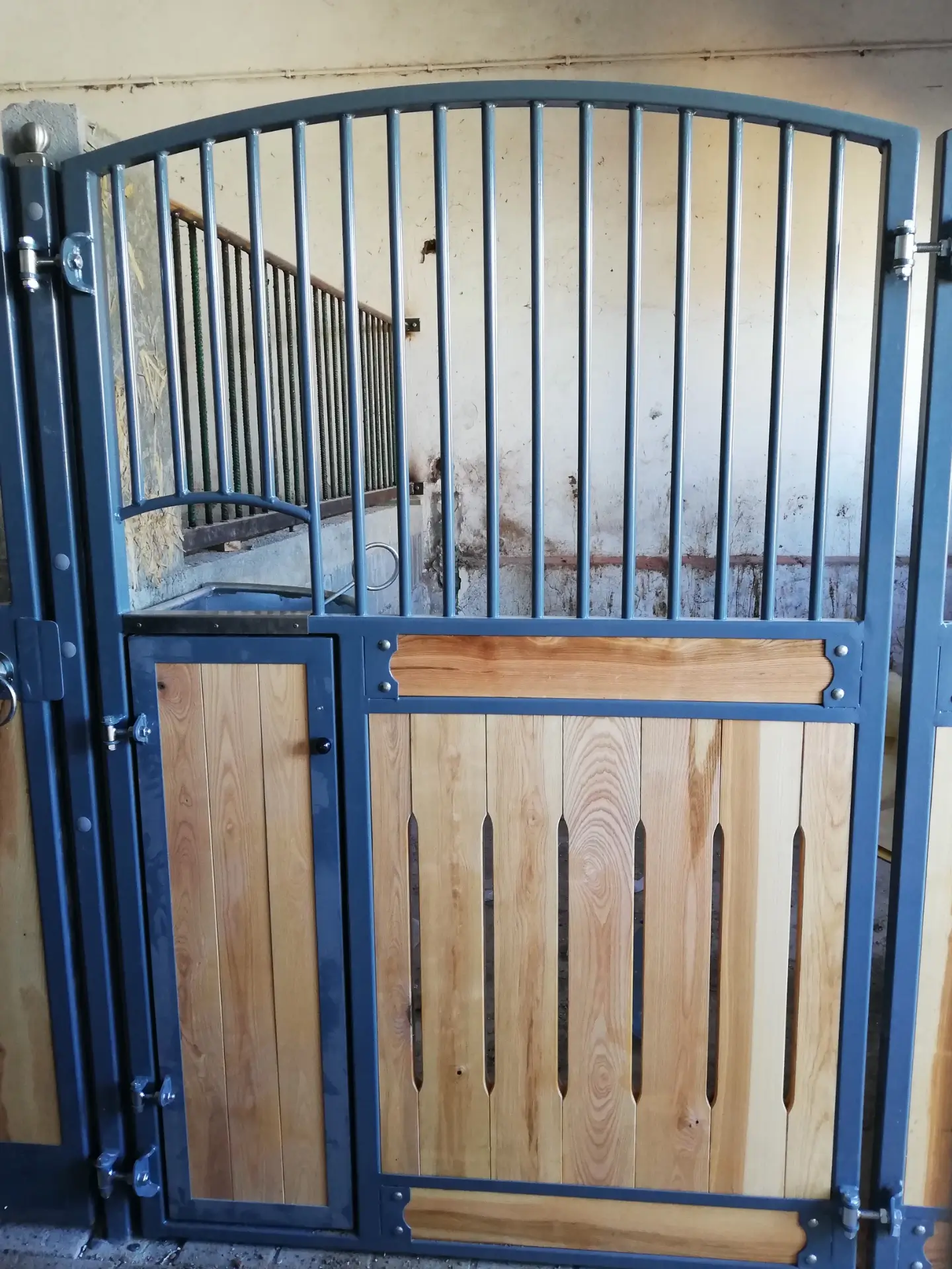 Drewniana dolna część frontu nadaje konstrukcji naturalny, klasyczny wygląd, podczas gdy górna część, wykonana z pionowych metalowych rurek, zapewnia dobrą wentylację. Fasada osadzona jest na mocnych metalowych słupkach z ozdobnymi zakończeniami, które można wybrać spośród dostępnych akcesoriów w naszym sklepie internetowym.