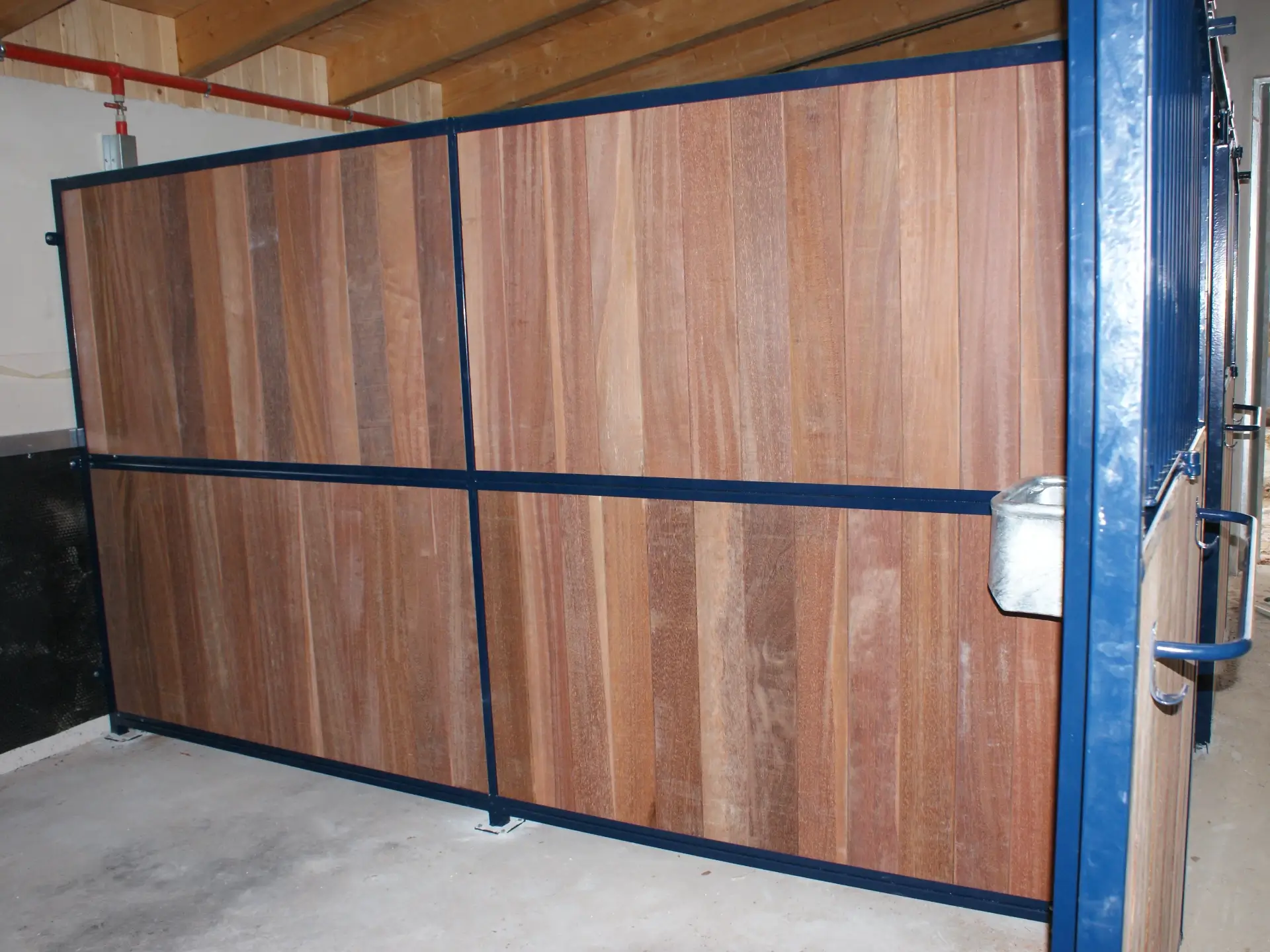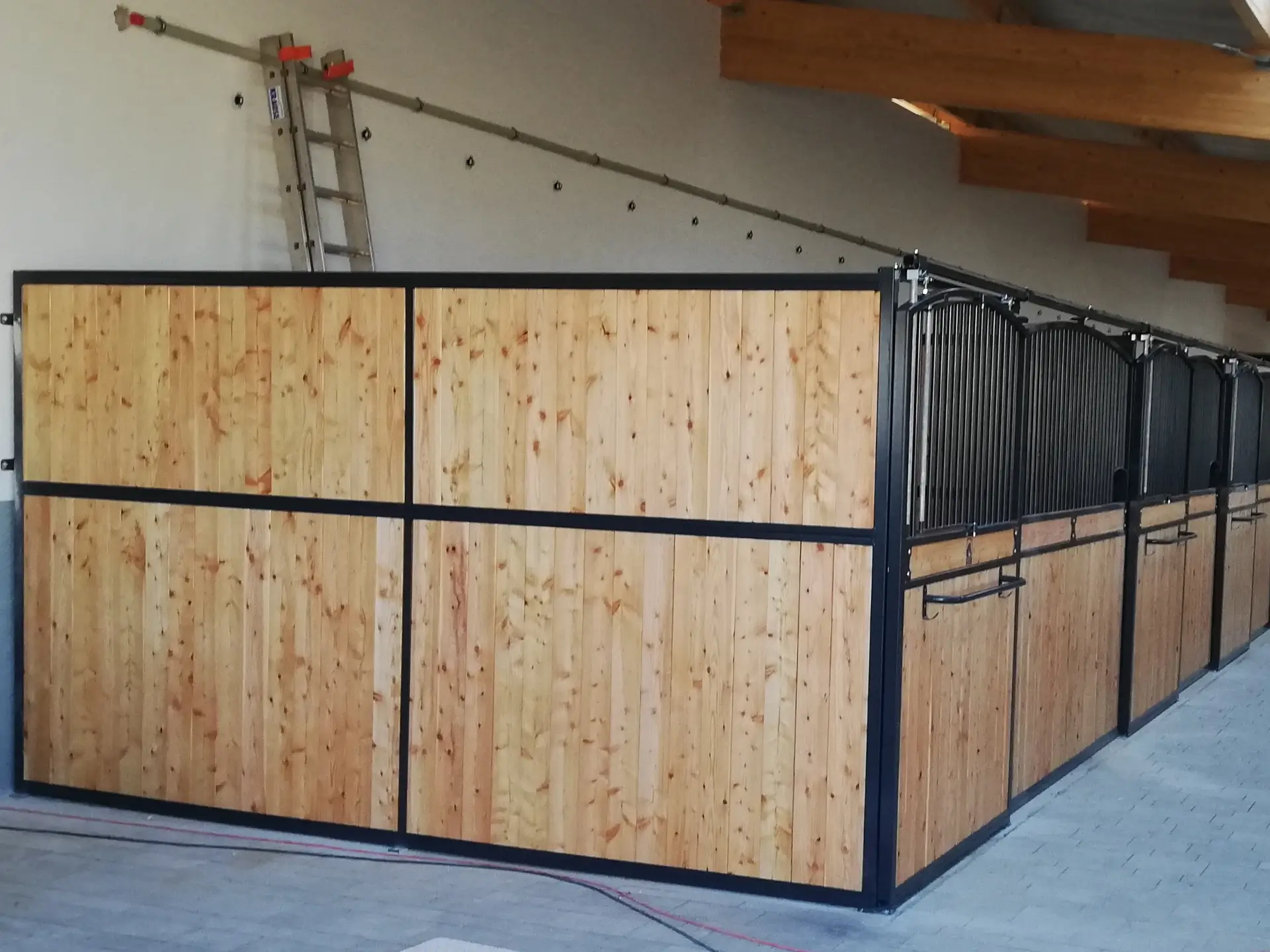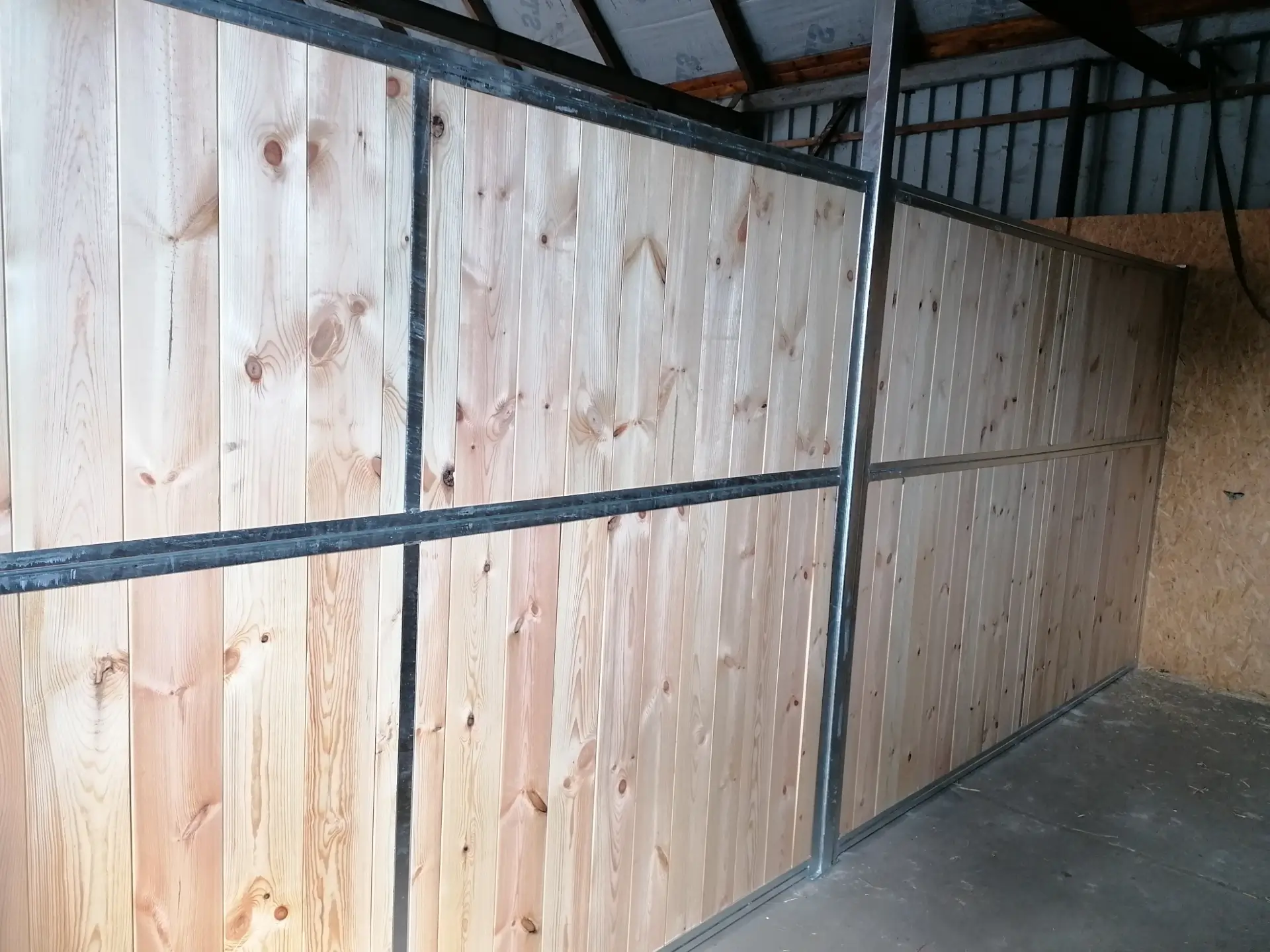 Ściana działowa SD10 to solidna i trwała konstrukcja, wykonana z metalowego stelaża i wypełniona deskami. Jej zadaniem jest skuteczne oddzielanie boksów dla koni, zapewniając jednocześnie prywatność oraz spokój zwierzętom. Konstrukcja jest odporna na warunki panujące w stajni, dzięki czemu gwarantuje długowieczność użytkowania.