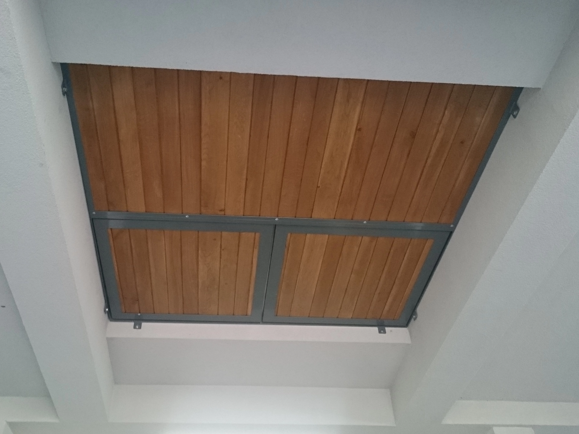 Okno otwierane, szyba bezpieczna, krata i szprosy, konstrukcja metalowa ocynkowana i pomalowana proszkowo.