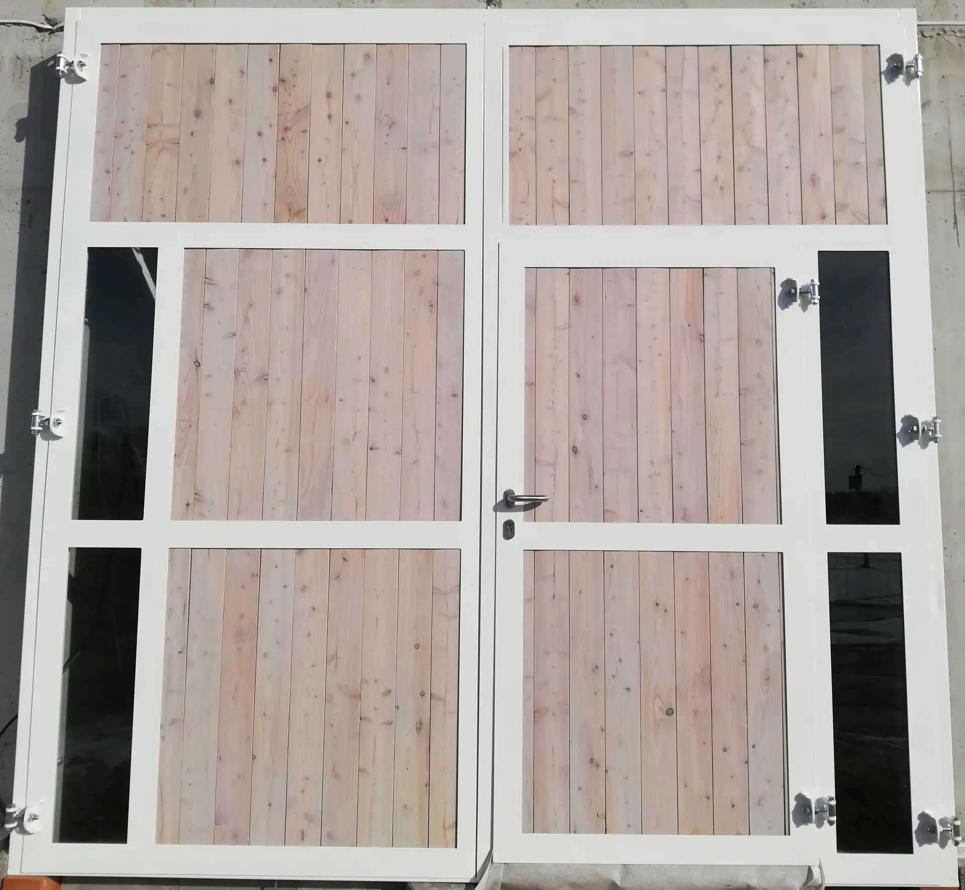 Okno otwierano-uchylne na zewnątrz, szyba bezpieczna, szprosy, konstrukcja metalowa ocynkowana.